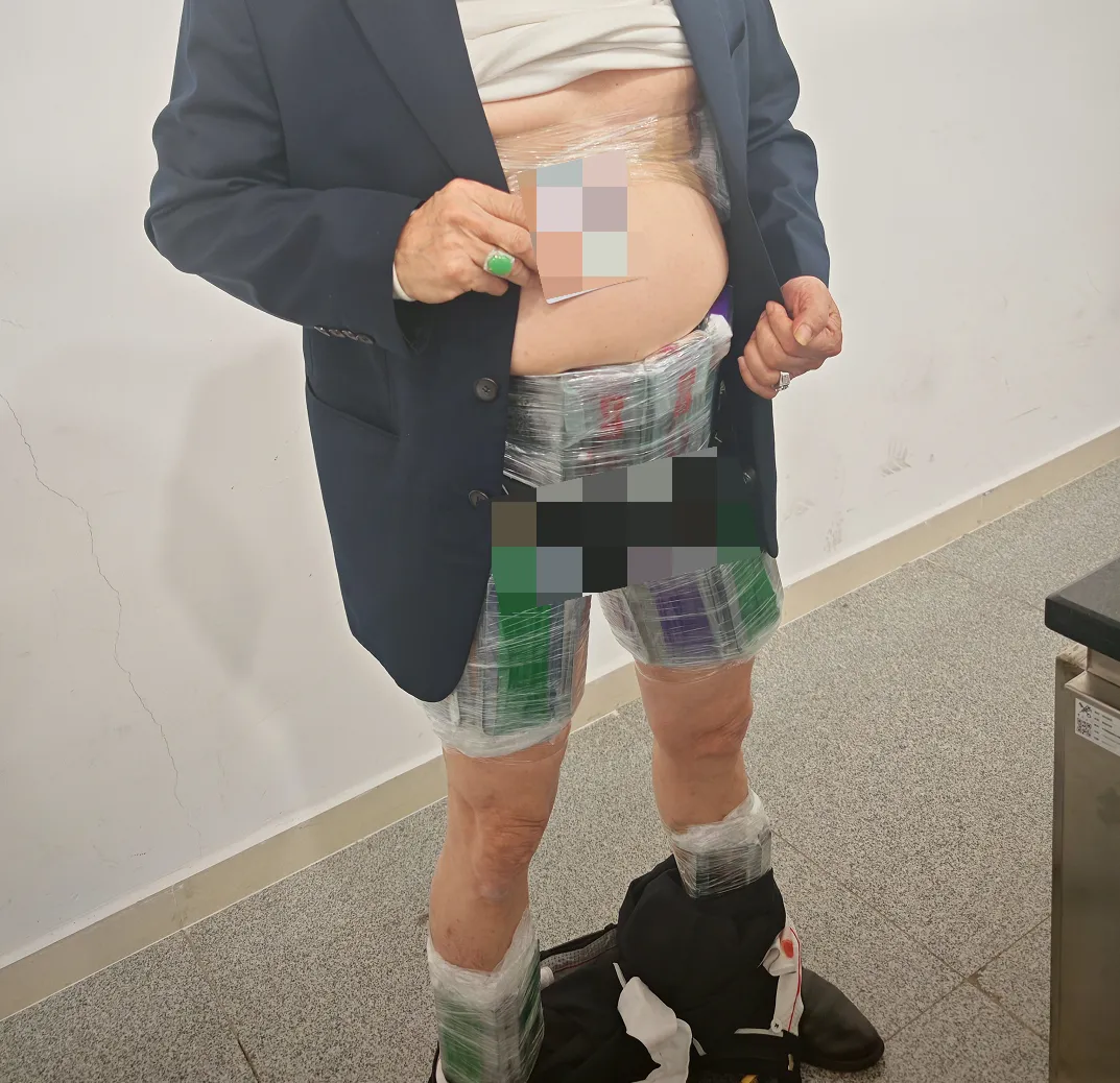 11月19日,一男子人身绑藏旧手机53台经拱北口岸进境,被海关当场查获。